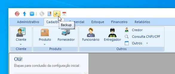 Dentro do sistema Link do computador que será substituído, vá na barra superior de ícones e escolha a opção Backup.