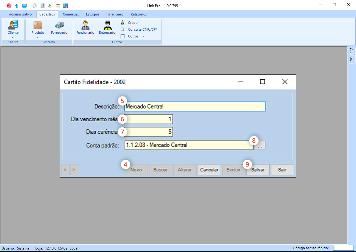 Para criar um cartão fidelidade, é necessário direcionar um plano de contas ao cartão, para isso, siga o passo a passo a seguir.