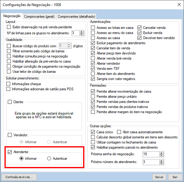 Importante: Habilitar essa configuração é o que faz com que este usuário apareça na lista de atendentes na inclusão dos pedidos.