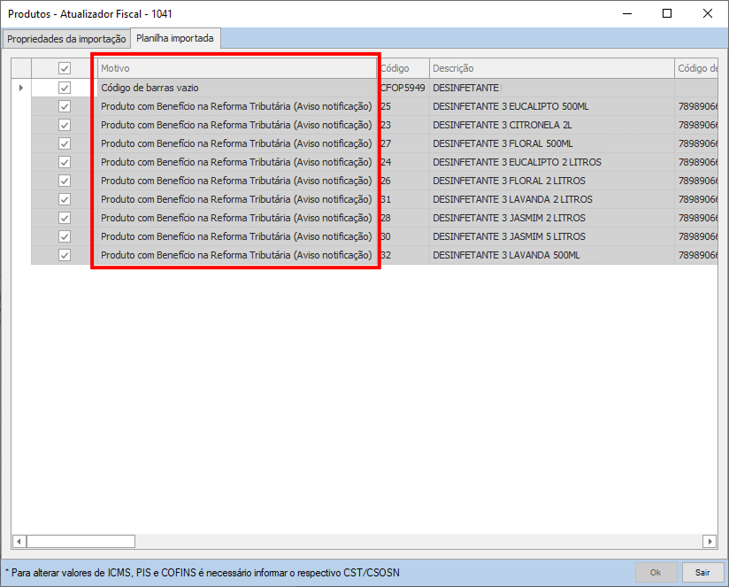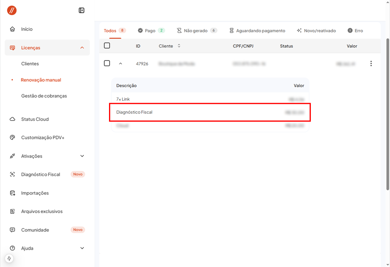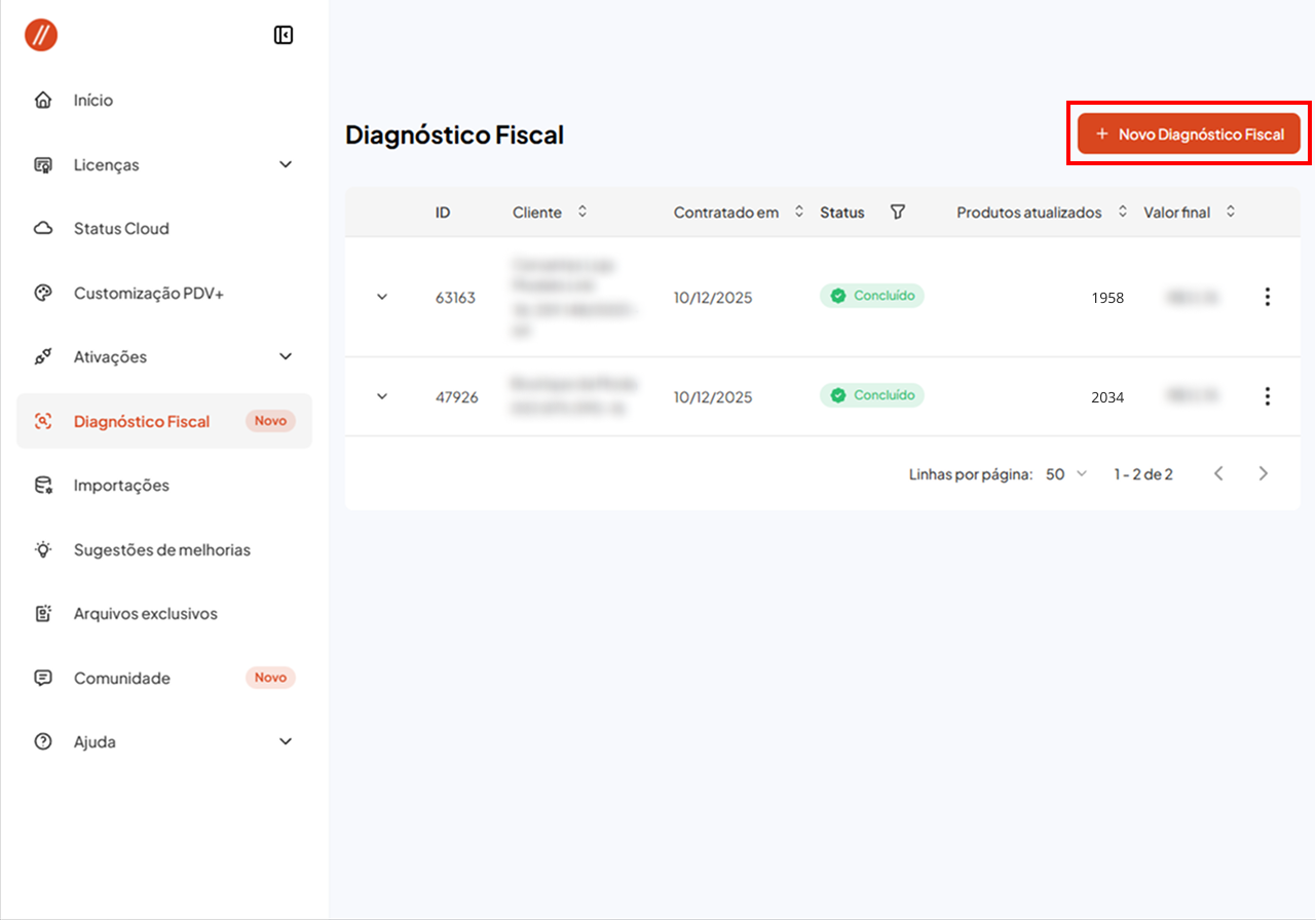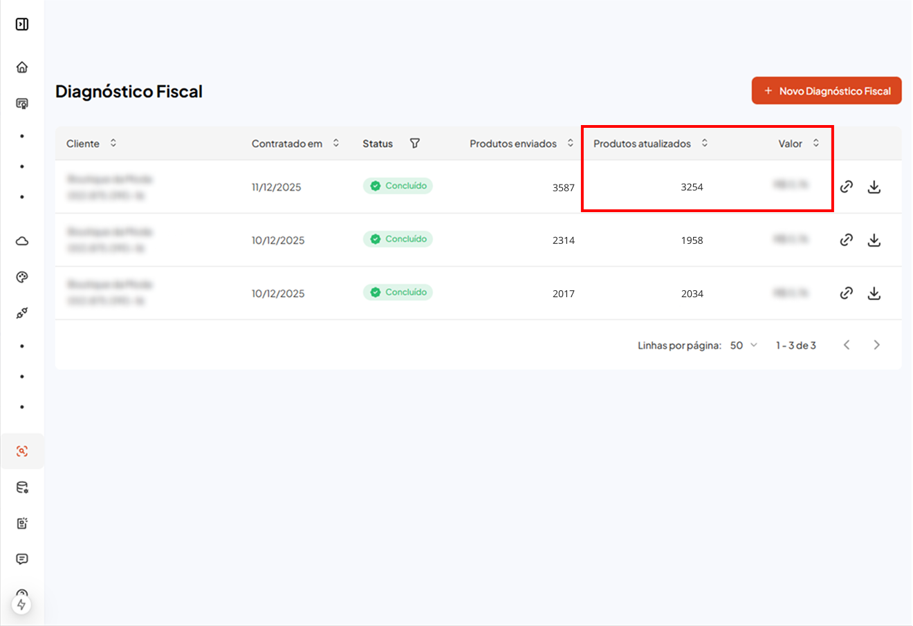 Agora os produtos foram atualizados através do serviço Diagnóstico Fiscal.