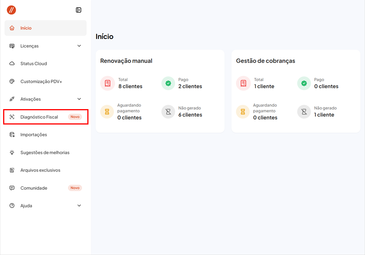 - Após realizar o login do Portal, vá para a janela Diagnóstico Fiscal.