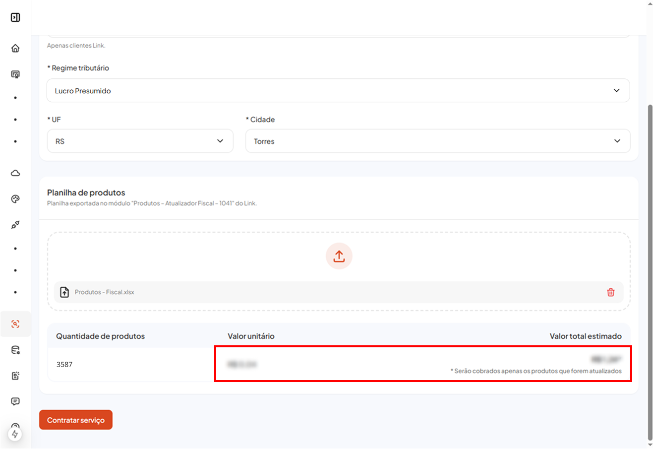 - Quando for concluído, será possível conferir no portal quantos produtos foram atualizados e qual o valor final do contrato.