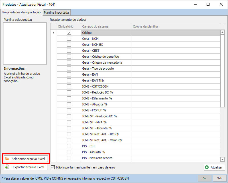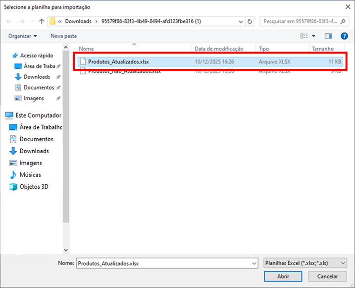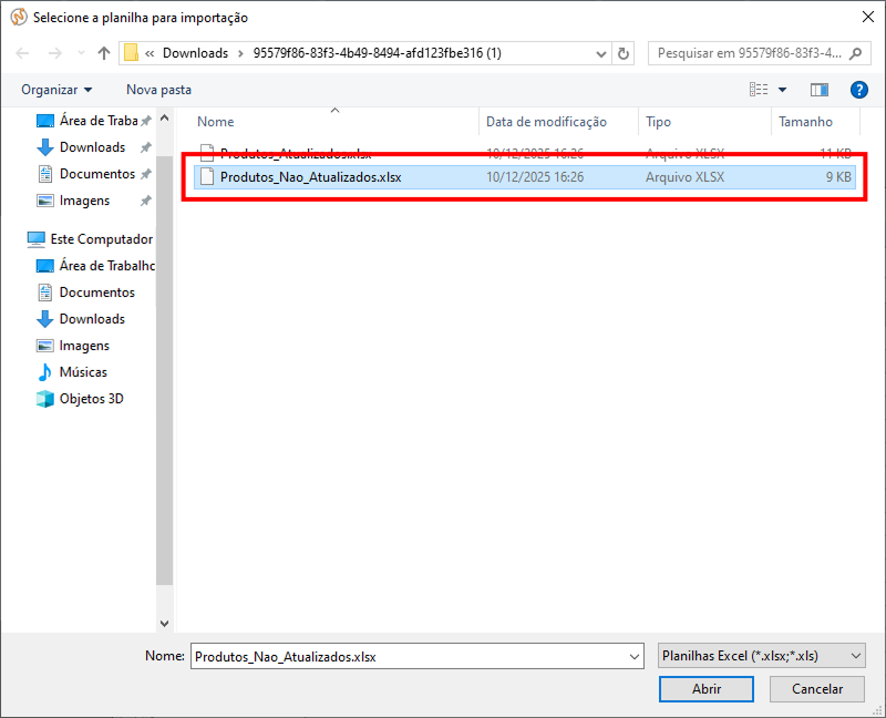 - Selecione o arquivo Produtos_Nao_Atualizados.