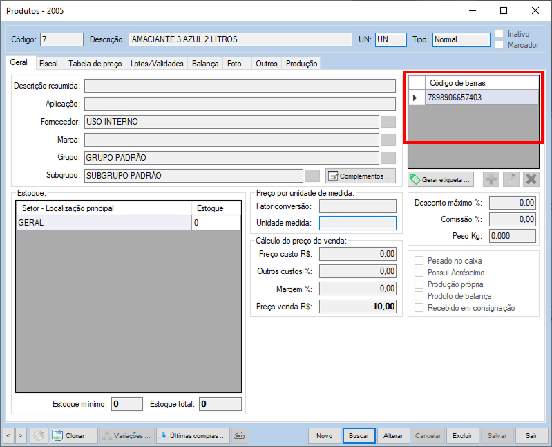 Para um melhor funcionamento é indicado que todos os produtos cadastrados possuam um código de barras.